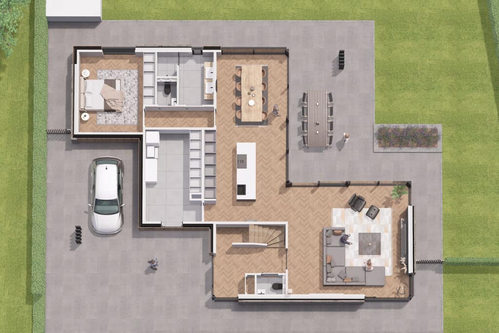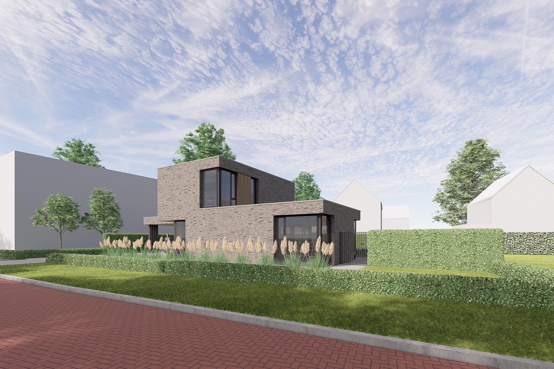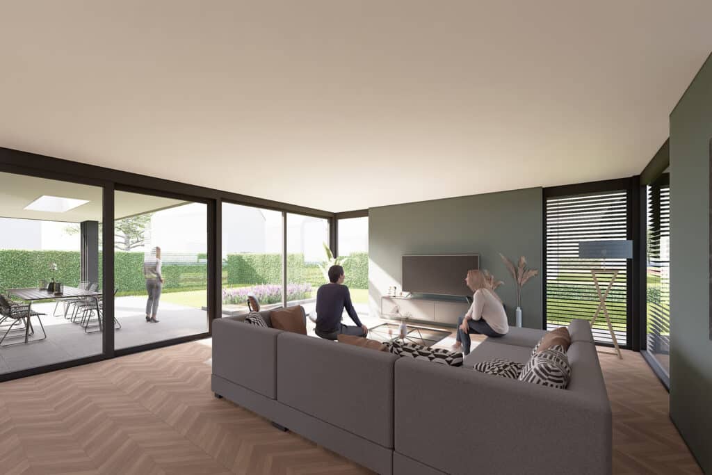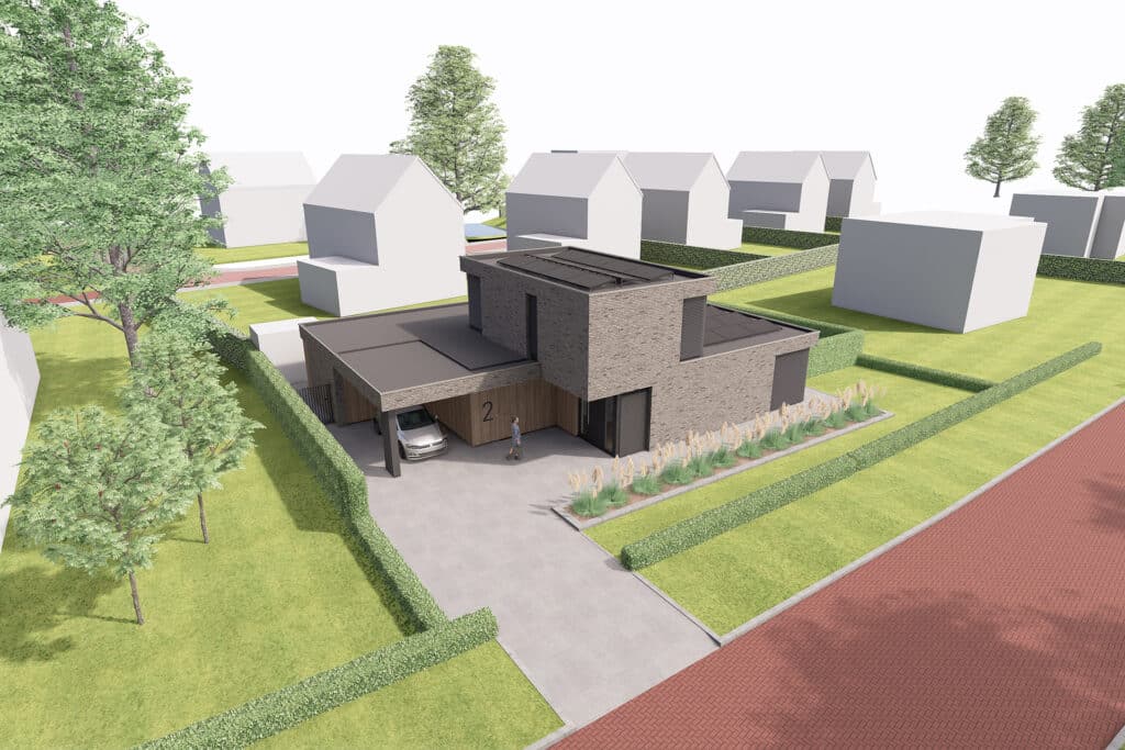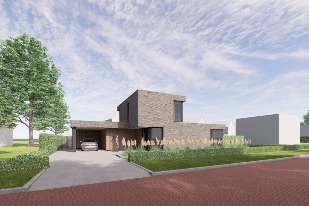 Deze vrijstaande semibungalow wordt gerealiseerd op een bijzondere locatie op een hoekkavel aan het begin van het plan en ligt op steenworp afstand van het bosgebied Loonse en Drunense Duinen. Het betreft hier een levensloopbestendige woning met een volledig woonprogramma op de begane grond. De kozijnen zijn overhoeks geplaatst om zo het uitzicht te optimaliseren. Tevens maakt het de statige woning lichtvoetig. In het ontwerp is gekozen voor bruin, grijze keramische gevelstenen. Door gebruik te maken van naturel gevelplanken zorgt het voor een harmonieus geheel.