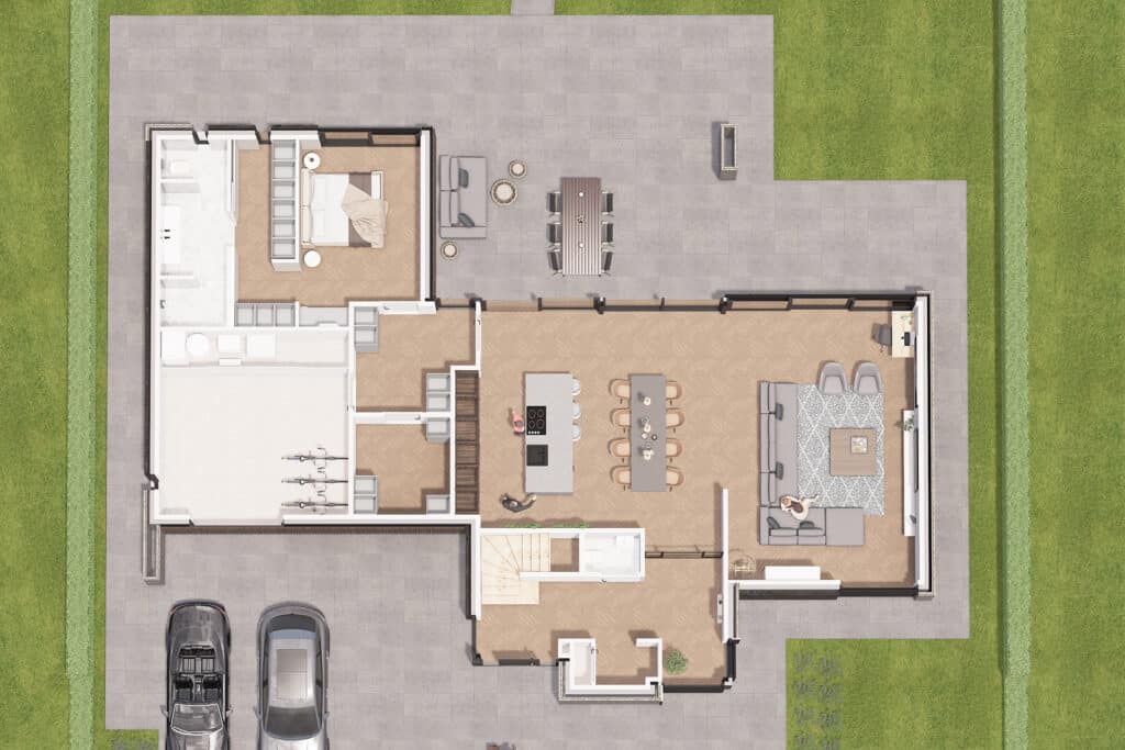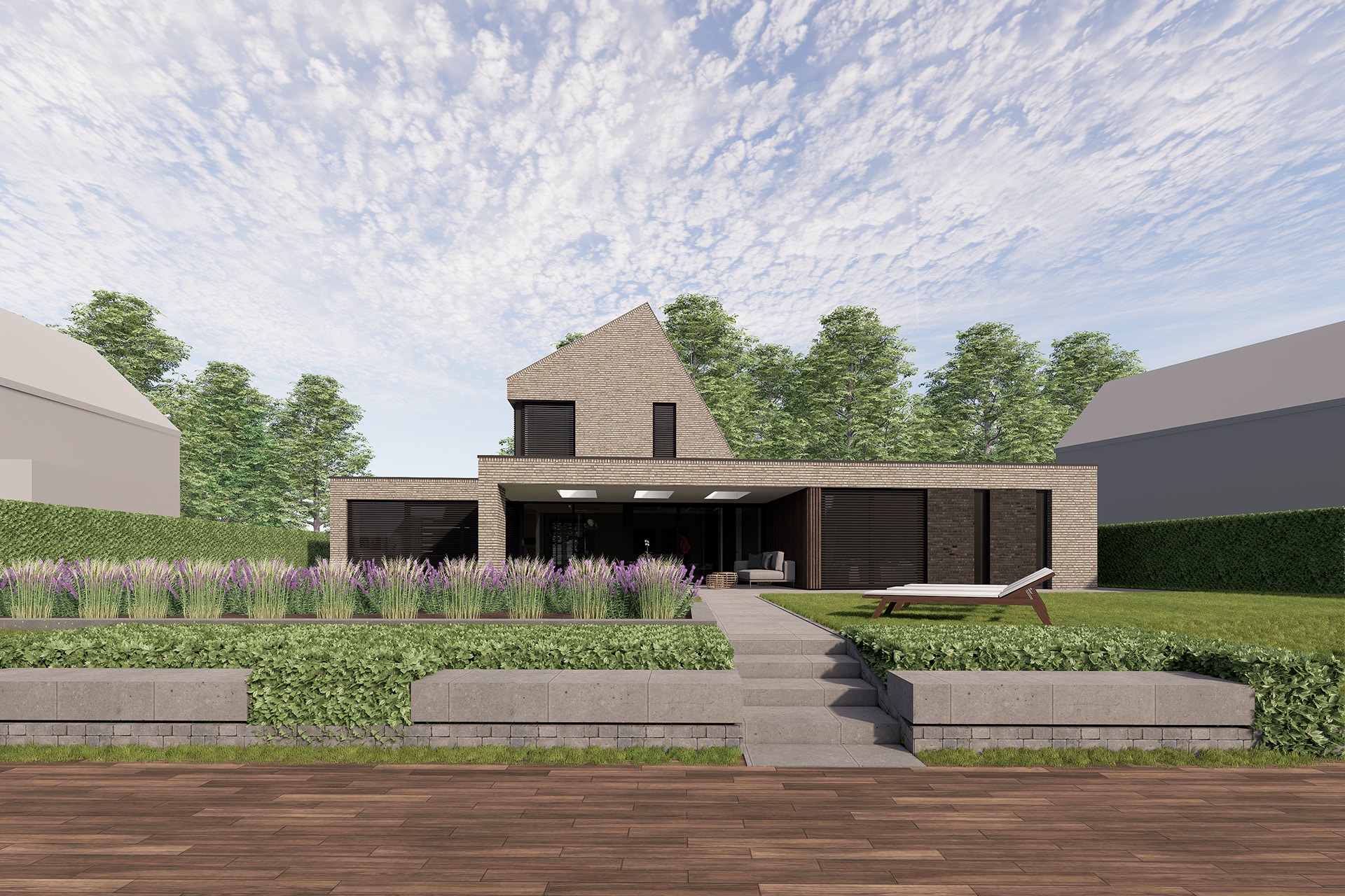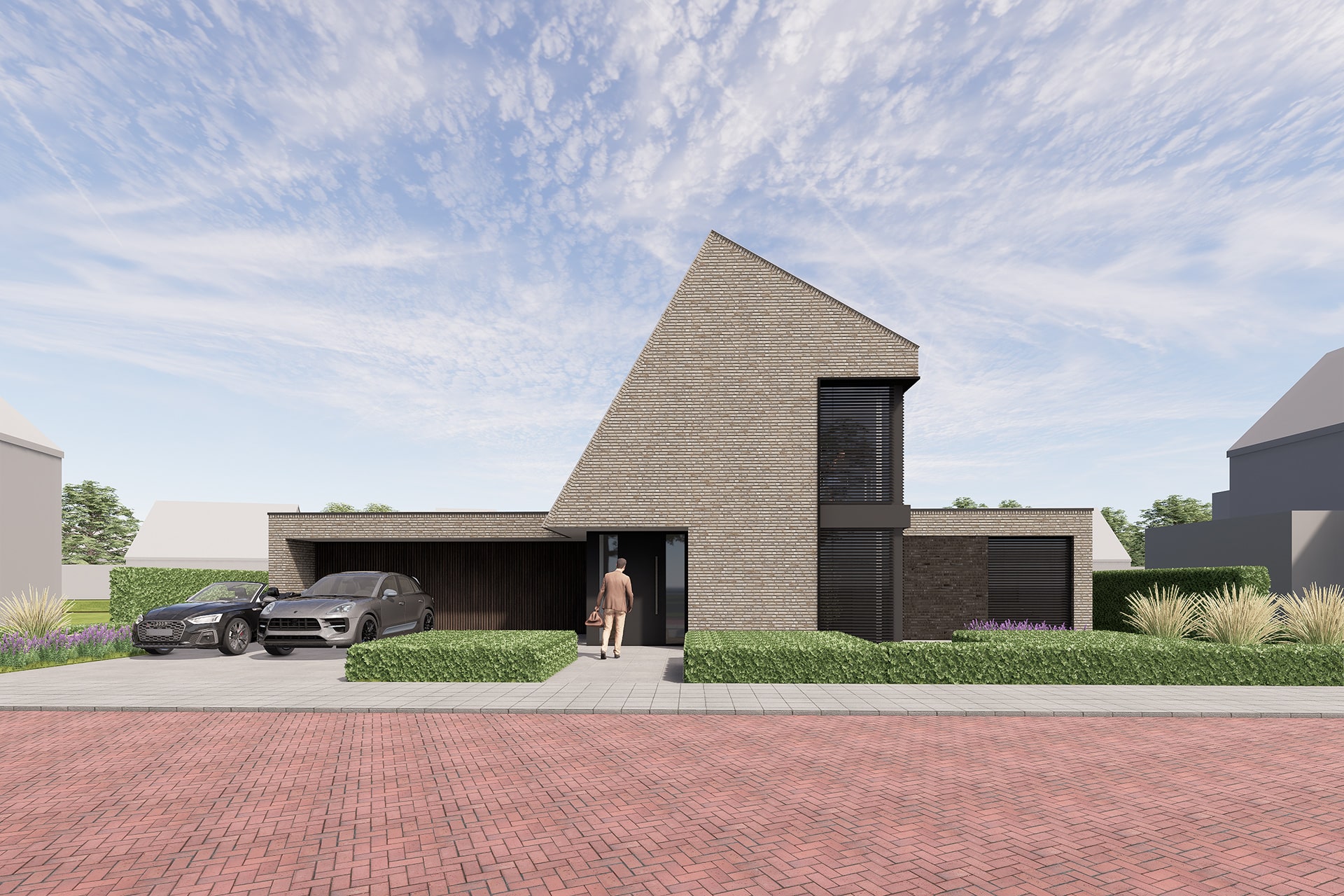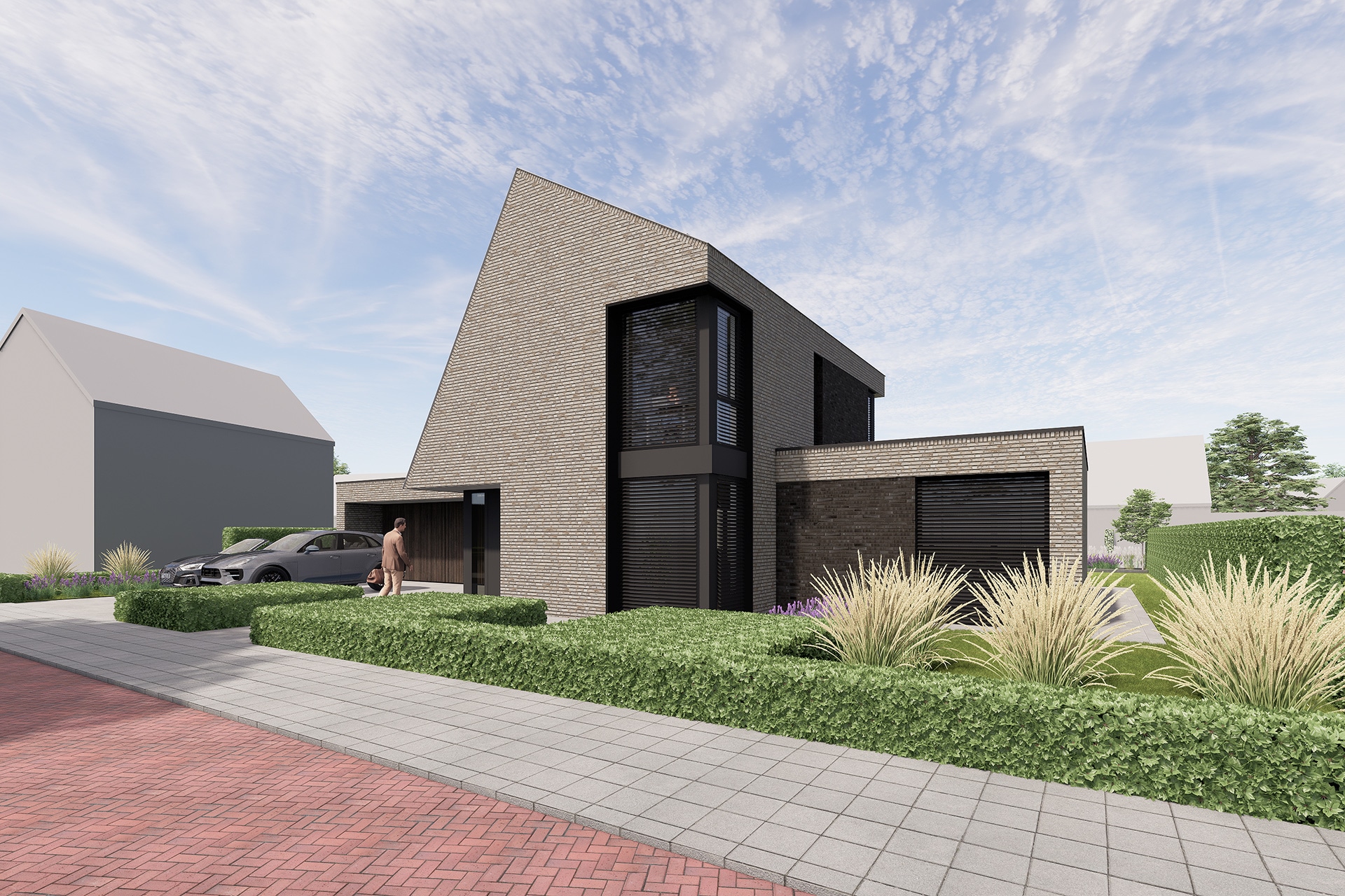 Deze vrijstaande woning wordt binnen het nieuwbouwplan Akkerlanen te Waalwijk gerealiseerd. Het betreft hier een levensloopbestendige woning met een volledig woonprogramma op de begane grond. Het eerste wat opvalt aan deze woning is zijn asymmetrische vormgeving. Daarnaast zorgt het schuine dak ervoor dat er optimaal gebruik gemaakt wordt van de zon. Het venster op de hoek is bewust geplaatst om zo een fraai zicht te hebben op het groen aan de voorzijde. Aan de andere zijde ligt een uitsparing waar zich de entree bevindt. De achterzijde ligt aan het water en hier is in het ontwerp rekening mee gehouden door de verblijfsruimte zoals de slaapkamer, zitkamer en de eetkeuken volledig te oriƫnteren op het water.