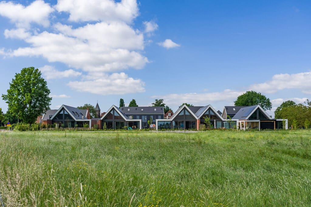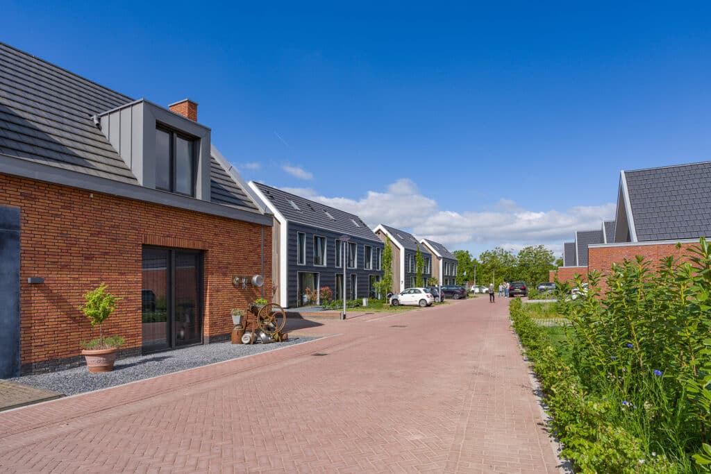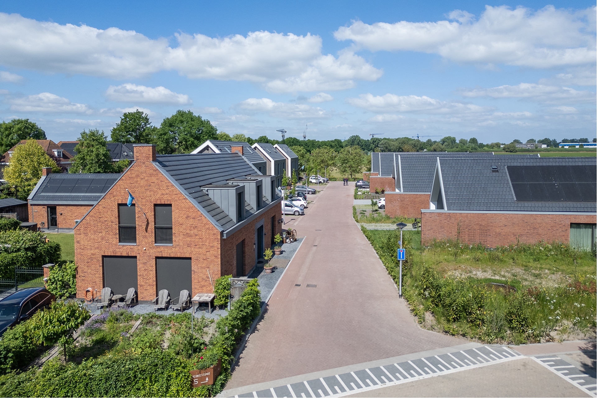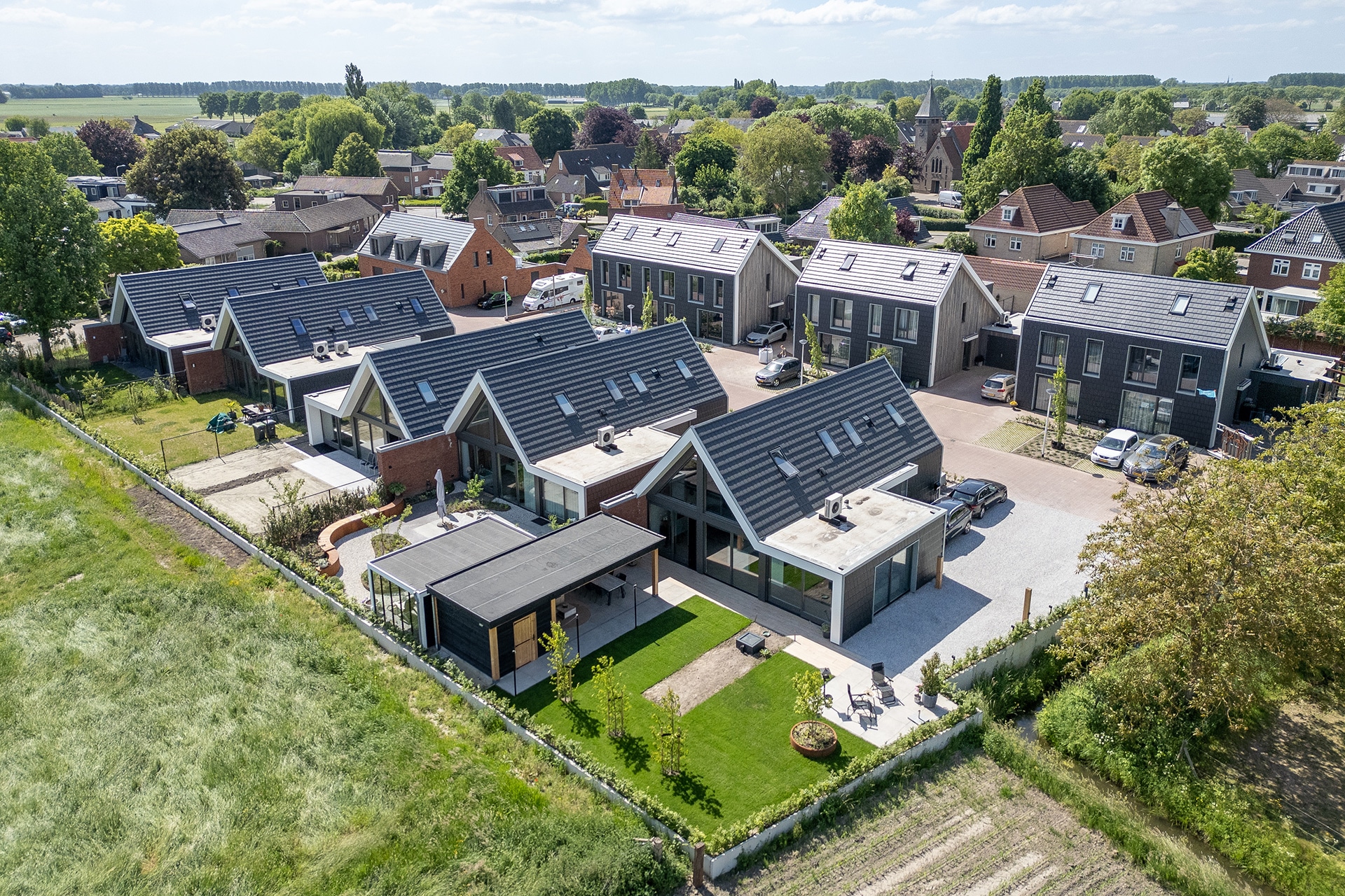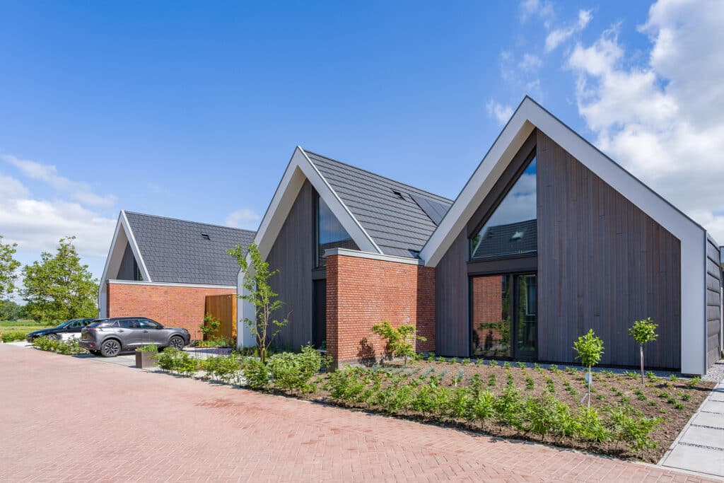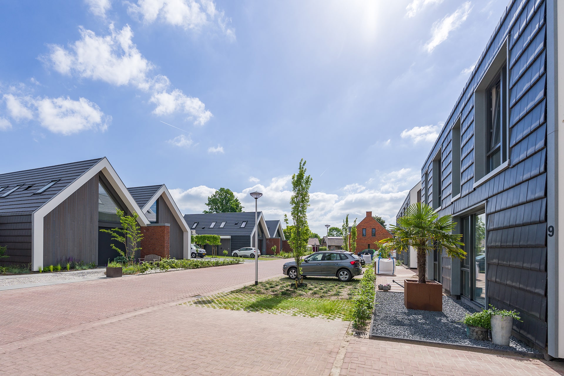 Ondanks de 3 typologieën van de boerderij, schuurwoningen en loodswoningen is er voor gekozen in de materialisering een eenheid te maken. Zo zijn bij alle woningen dezelfde antracieten vlakke keramische dakpan gebruikt. De kozijnkleuren zijn gelijk en tevens de houtenplanken van de loodswoningen komen terug in de gevels van de schuurwoningen. Ten slotte komt de oranje gevelsteen van de boerderij terug in de scheidingswanden van de schuurwoningen. De oranje gevelsteen is een verwijzing naar de oorspronkelijke boerderij met opstallen waar ook een duidelijke oranje steen is gebruikt.