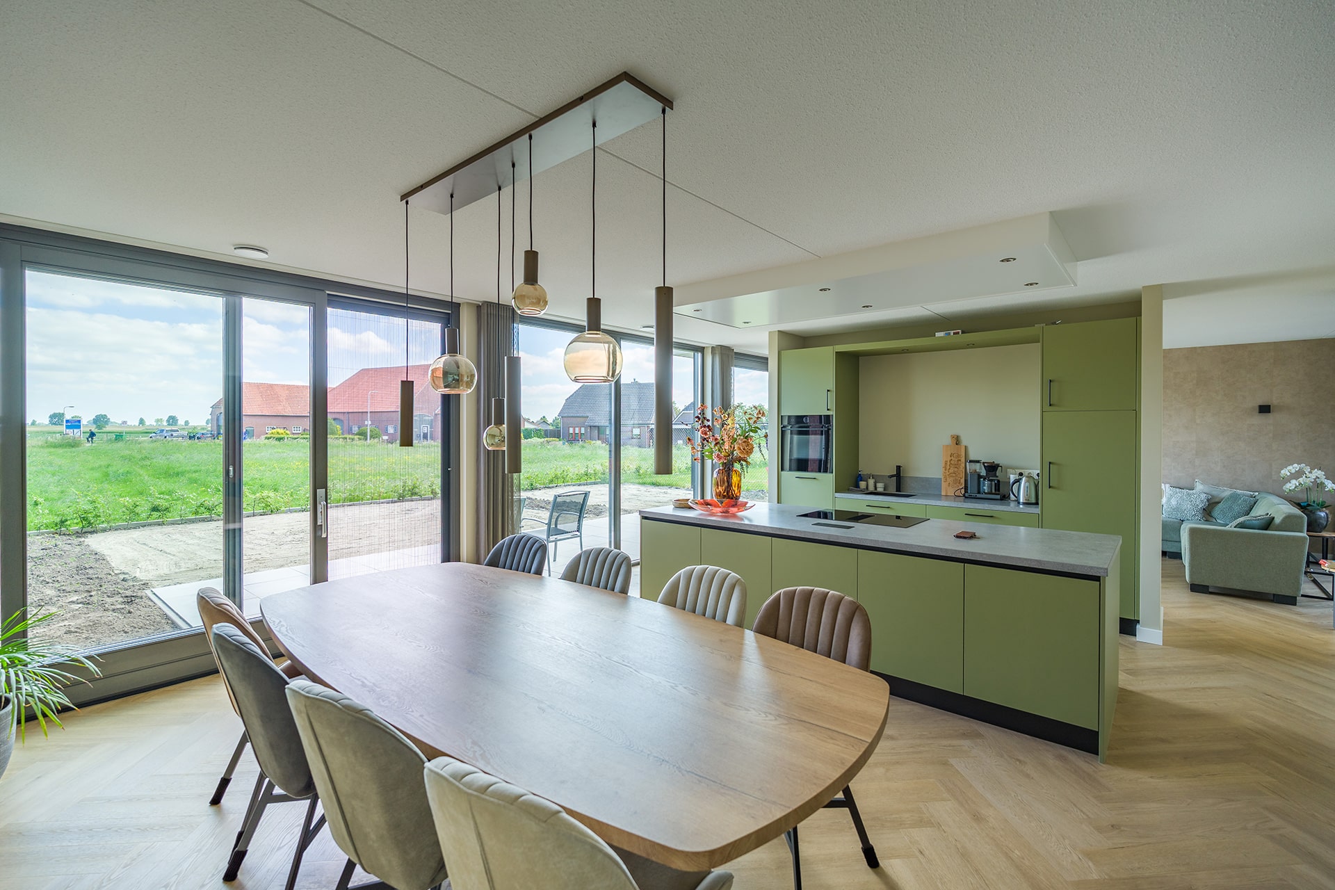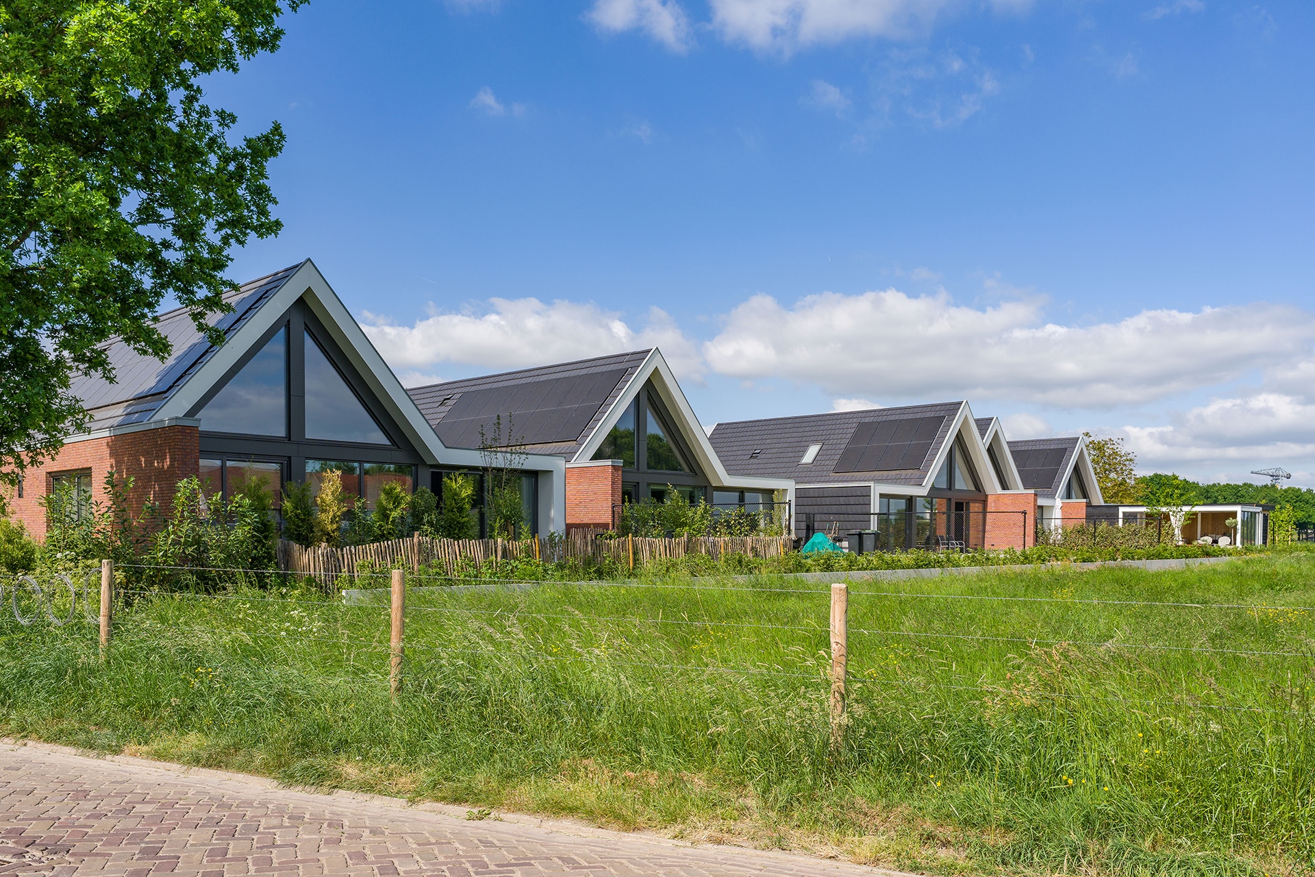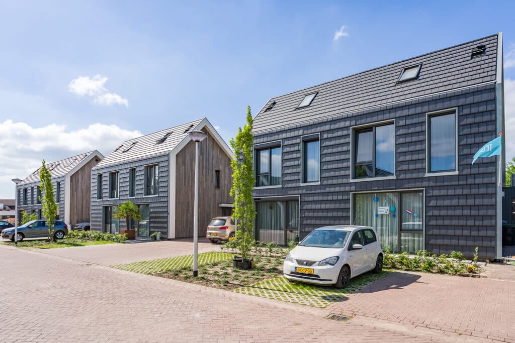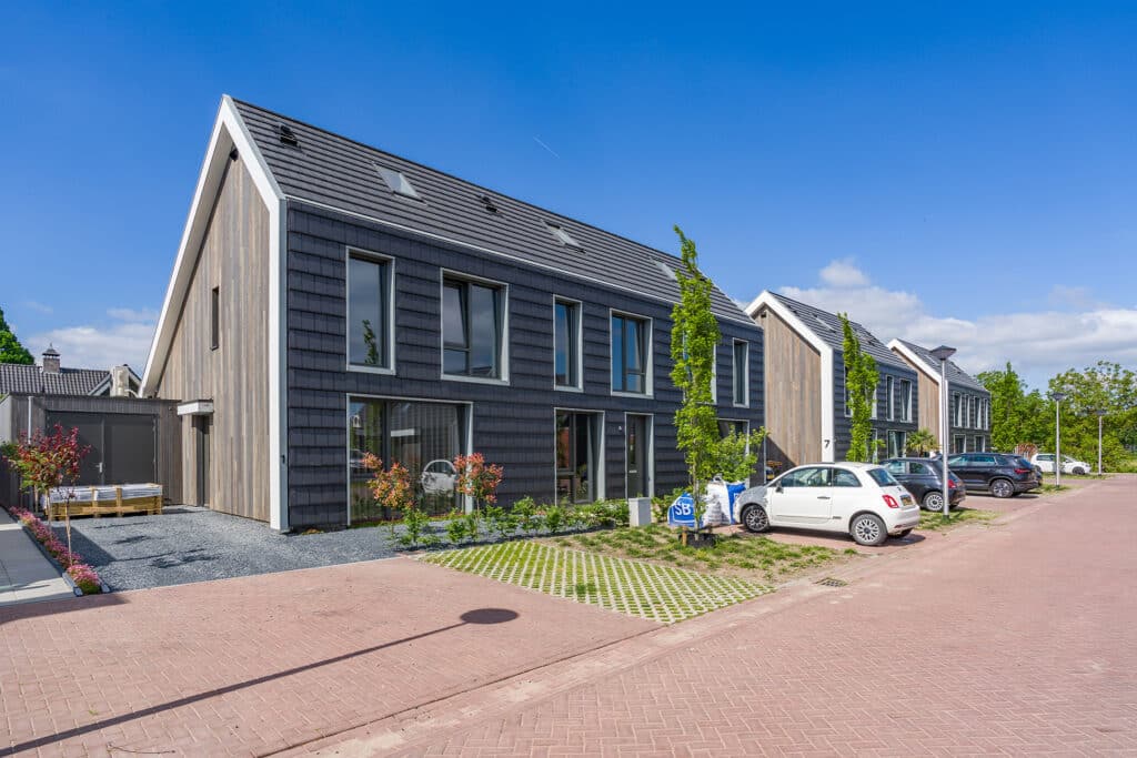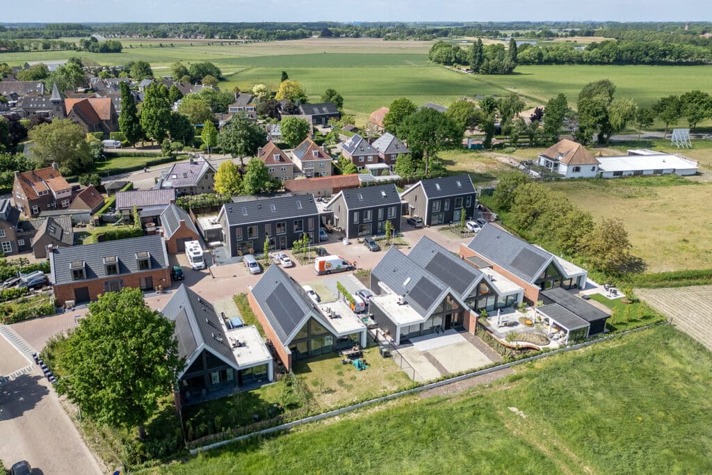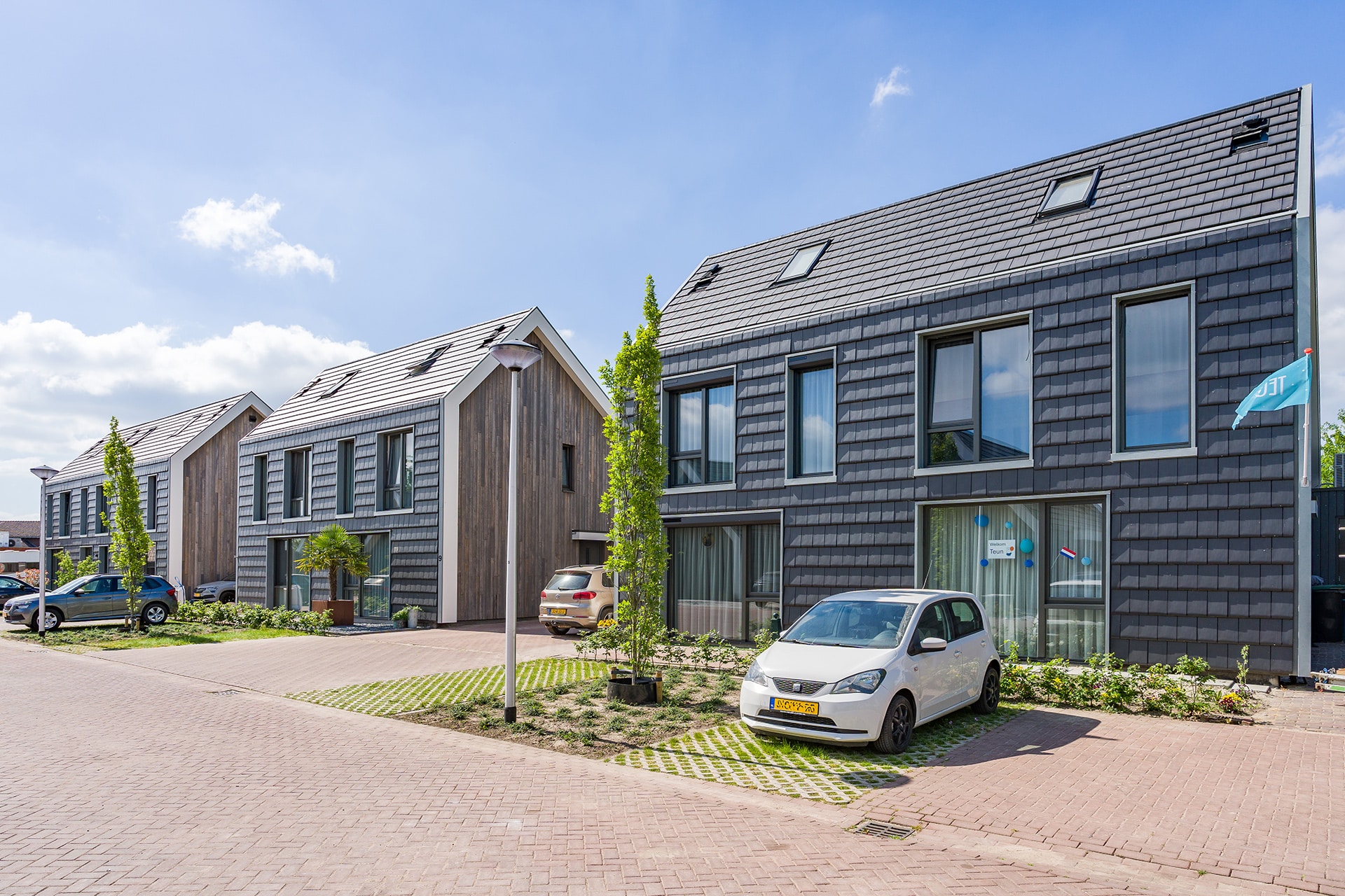 Ondanks de 3 typologieën van de boerderij, schuurwoningen en loodswoningen is er voor gekozen in de materialisering een eenheid te maken. Zo zijn bij alle woningen dezelfde antracieten vlakke keramische dakpan gebruikt. De kozijnkleuren zijn gelijk en tevens de houtenplanken van de loodswoningen komen terug in de gevels van de schuurwoningen. Ten slotte komt de oranje gevelsteen van de boerderij terug in de scheidingswanden van de schuurwoningen. De oranje gevelsteen is een verwijzing naar de oorspronkelijke boerderij met opstallen waar ook een duidelijke oranje steen is gebruikt.