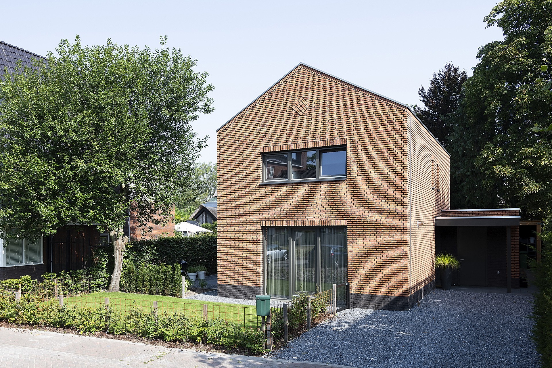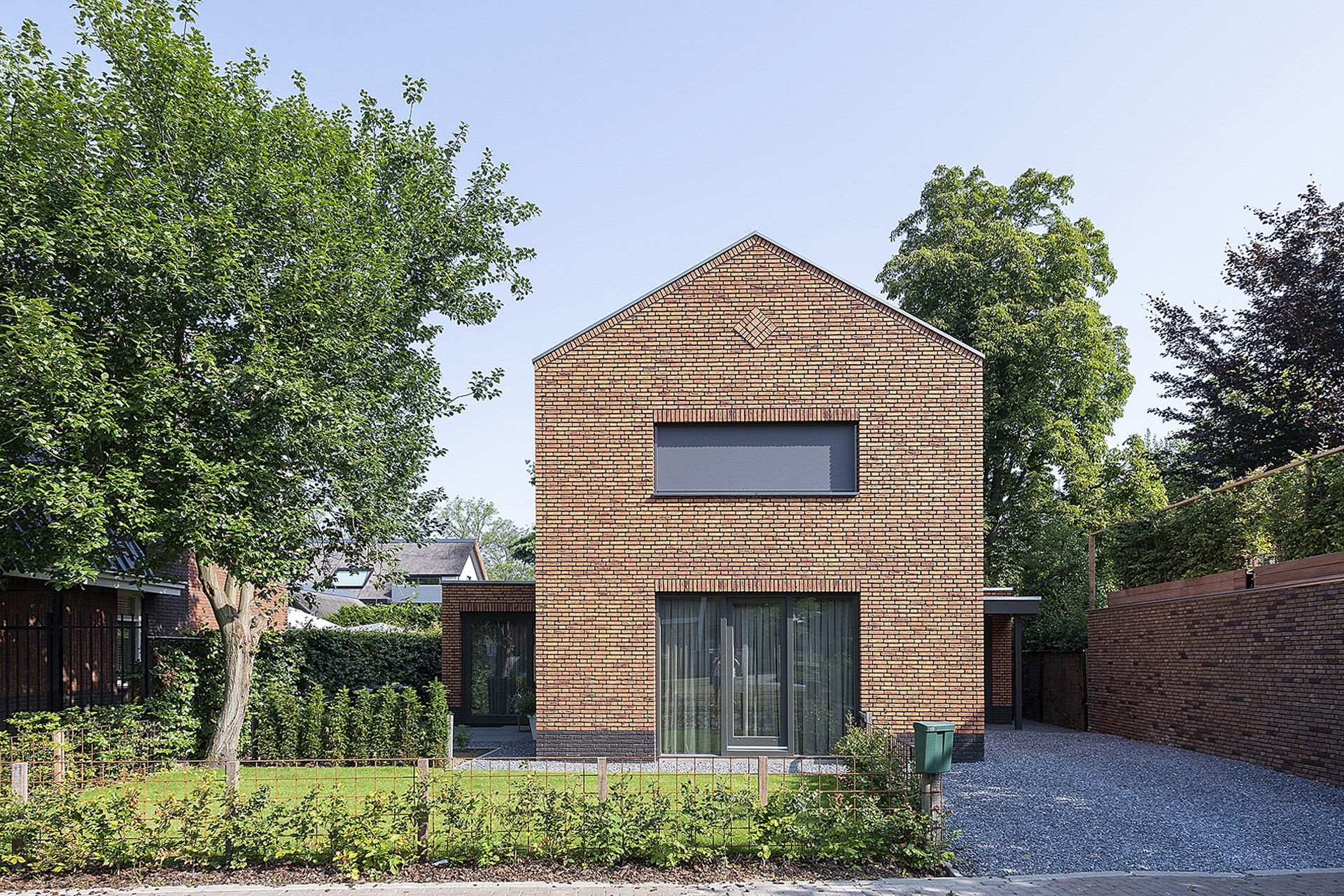 Het voormalige Willem van Oranje College in Waalwijk heeft een nieuwe bestemming gekregen in de vorm van appartementen. Achter dit gebouw is het ‘Binnenhof’ gerealiseerd in de vorm van een aantal 2- onder 1 kap- en vrijstaande woningen. Achter de voormalige school woonde vroeger de conciërge en deze woning is bij de realisatie van dit hof intact gebleven. Helaas was deze karakteristieke woning in zeer slechte staat en kon deze niet behouden blijven. Wij hebben getracht een woning te maken die aan de wensen van de klant voldoet en tevens nog subtiele verwijzingen heeft naar de voormalige conciërgewoning en het naast gelegen voormalige schoolgebouw. Zo is het contour van de woning in hoogte, breedte en diepte intact gebleven. Uiteraard wat verschaald. Zo is de woning ook bedekt met een flauw zadeldak, karakteristieke schoorsteen en is de woning uitgevoerd in een fraaie oranje gevel steen. Subtiel detail is de wiebervorm in de kopgevel, deze vormt een exacte kopie.