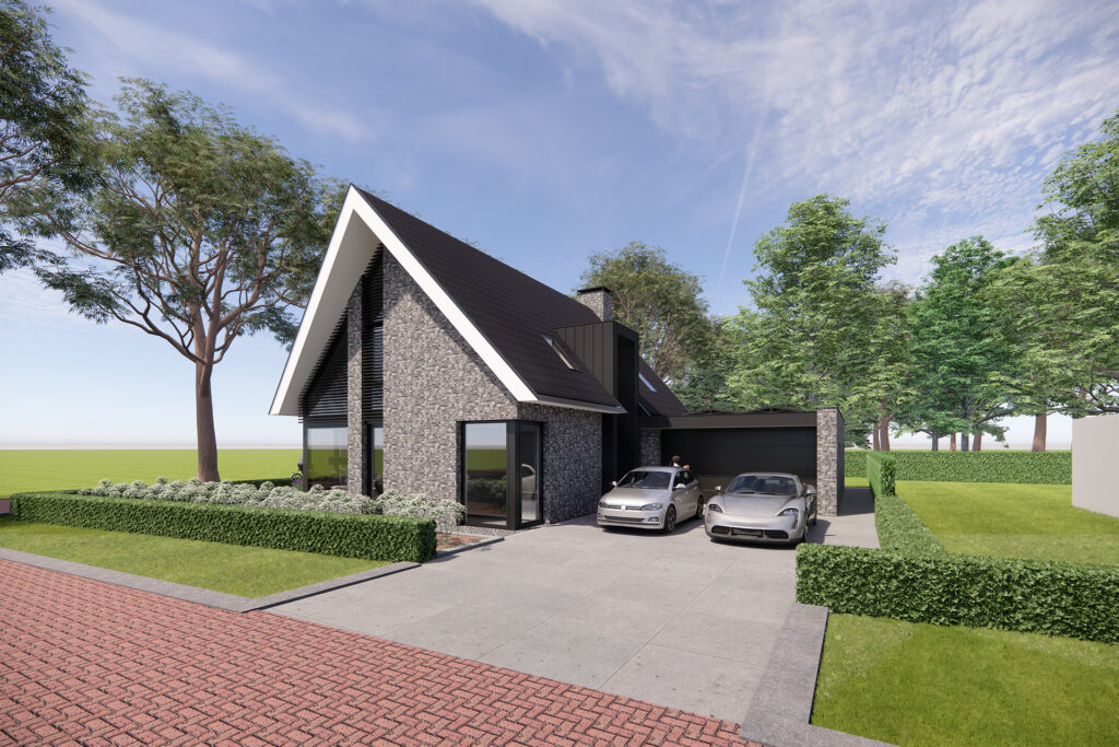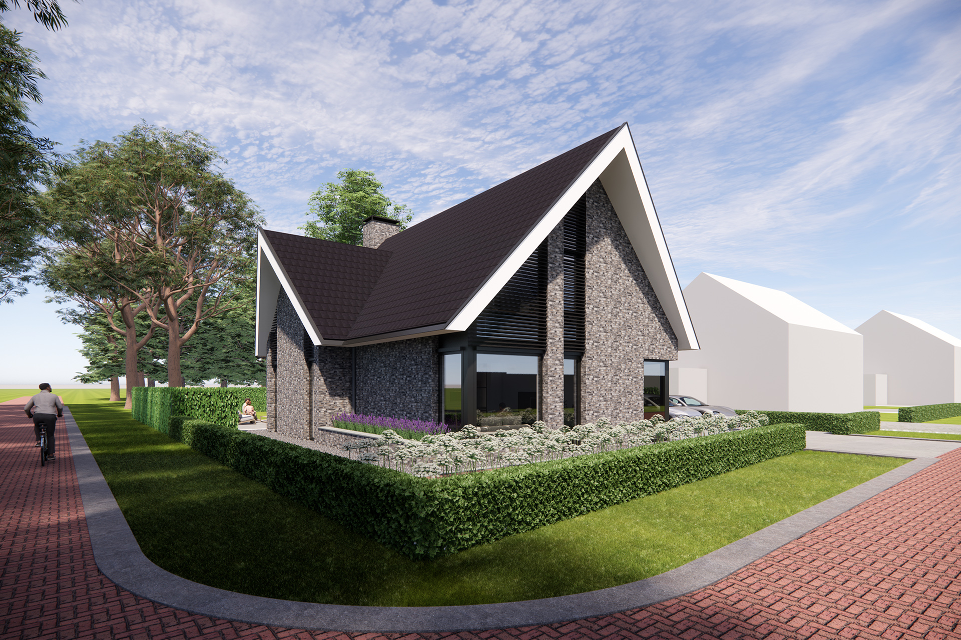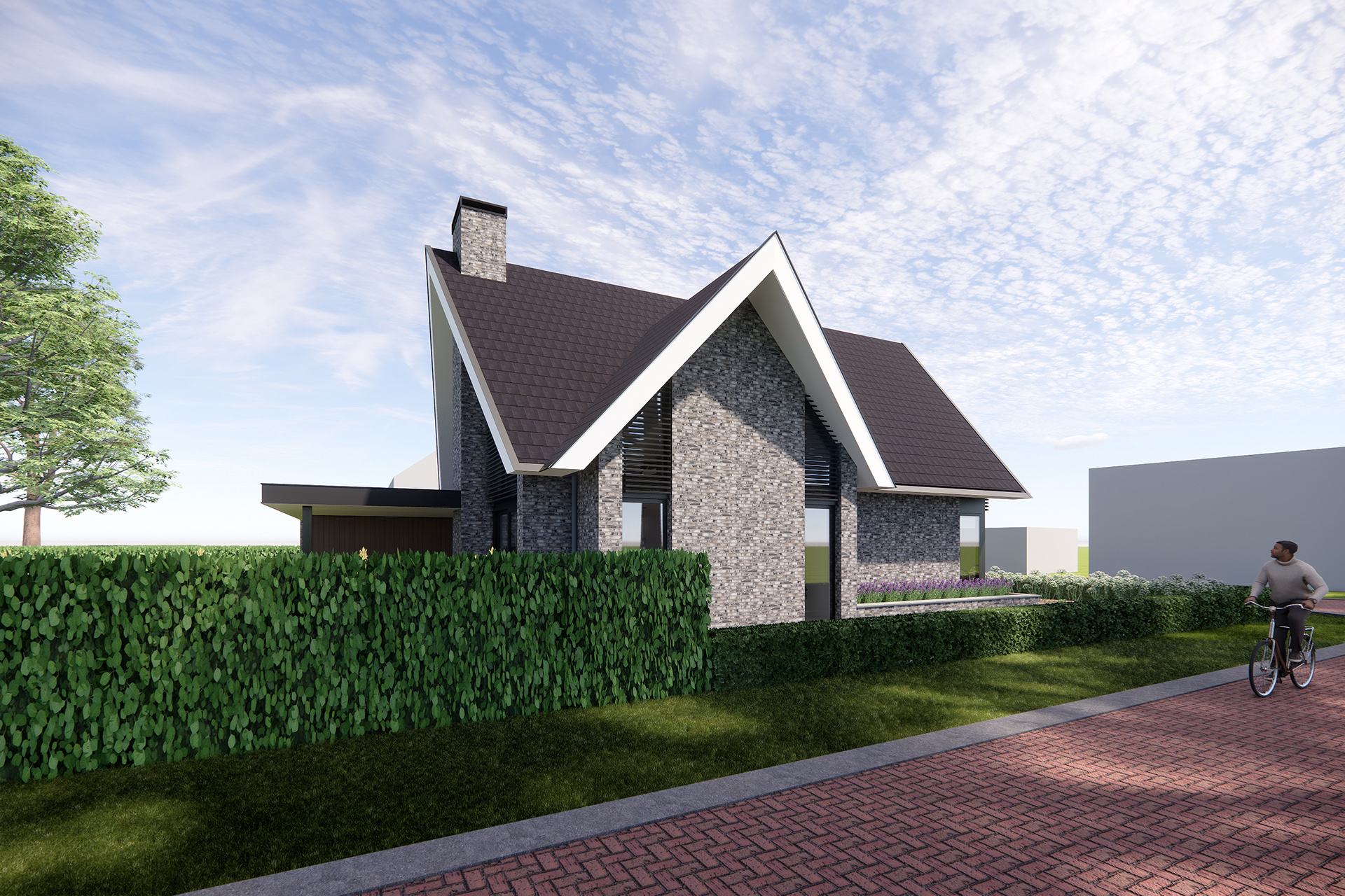 Deze vrijstaande woning komt te liggen in de nieuwbouwwijk Boschkens-West in Goirle. Het plan genaamd Hertenwei is vernoemd naar de voormalige en deels aangrenzende hertenwei in Goirle. Kenmerkend voor deze wijk is de ruime opzet direct gelegen aan de groene rand van Goirle wat zorgt voor veel rust en ruimte. De woning is op een hoekkavel gesitueerd en daarom uitgevoerd met een kenmerkende tweezijdige kap. In het ontwerp is er ook rekening gehouden met de aanwezigheid van de groenstrook aan de achterzijde, maar tevens ook de zuidzijde. Zo is gekozen voor grote raampartijen, zowel aan de voorzijde als achterzijde, zodat er optimaal zicht en licht is.