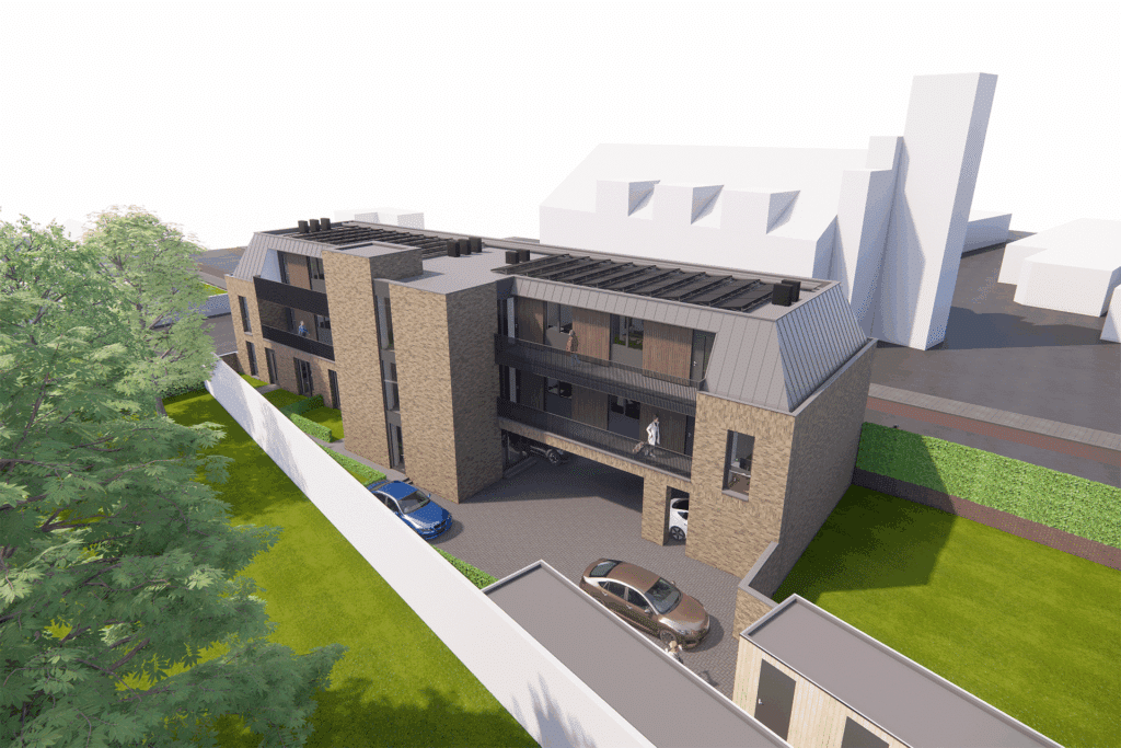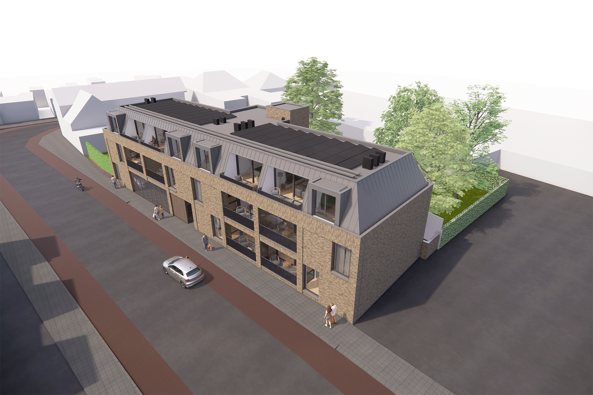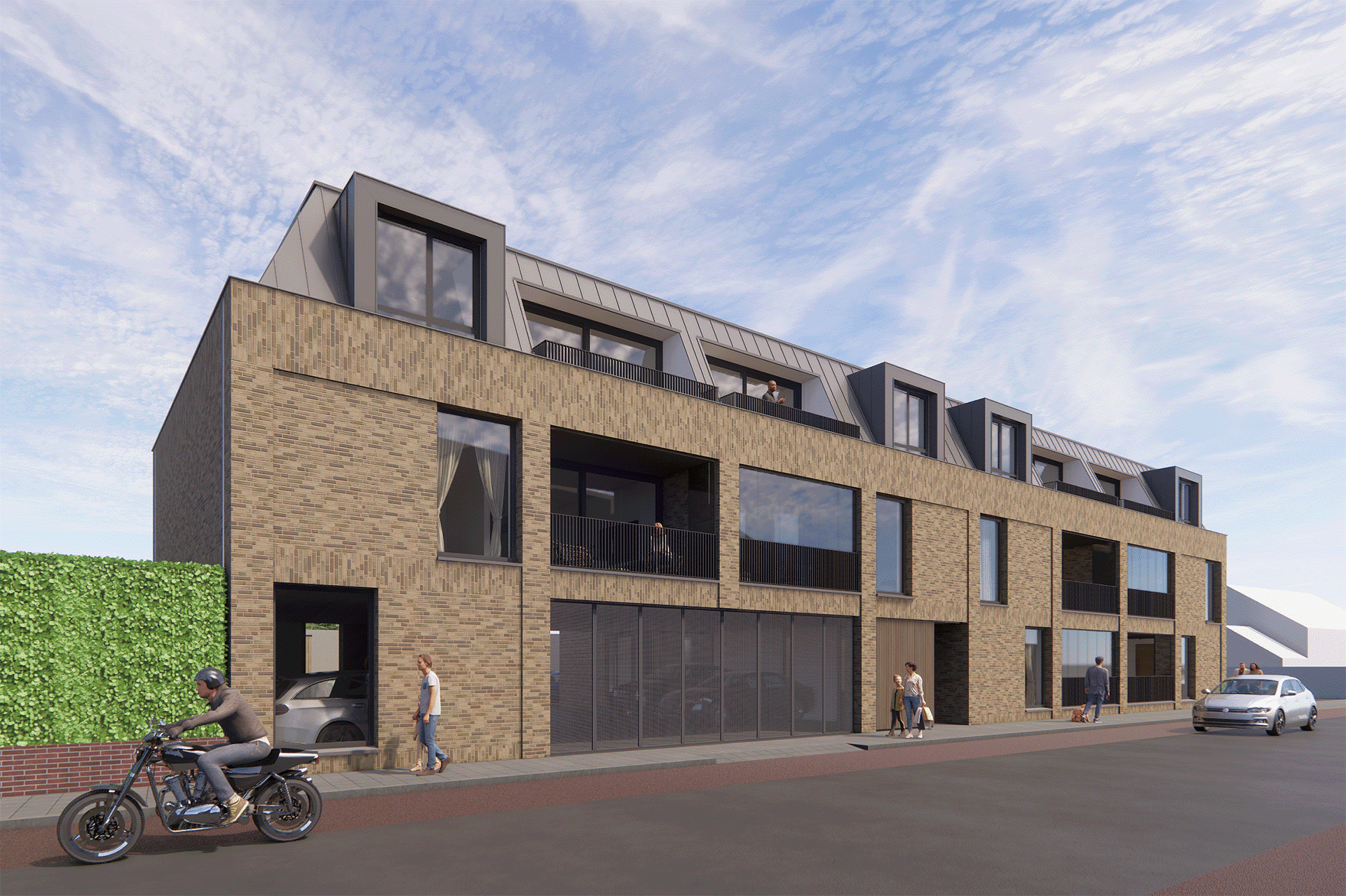 Op deze locatie worden een 10-tal appartementen gerealiseerd. De parkeerplaatsen dienen op eigen terrein te worden opgelost en daarom is ervoor gekozen om de het parkeren deels onder het gebouw te situeren. De woningen worden via de achterzijde ontsloten doormiddel van een galerij.