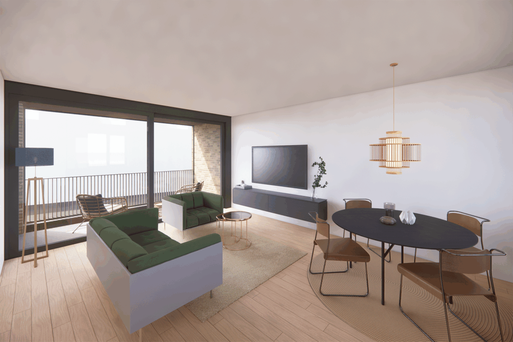 Er zijn zes verschillende typologieën, bestaande uit een aantal 2- en 3 kamer appartementen. Aan de straatzijde heeft men een buitenruimte in de vorm van een wintertuin.