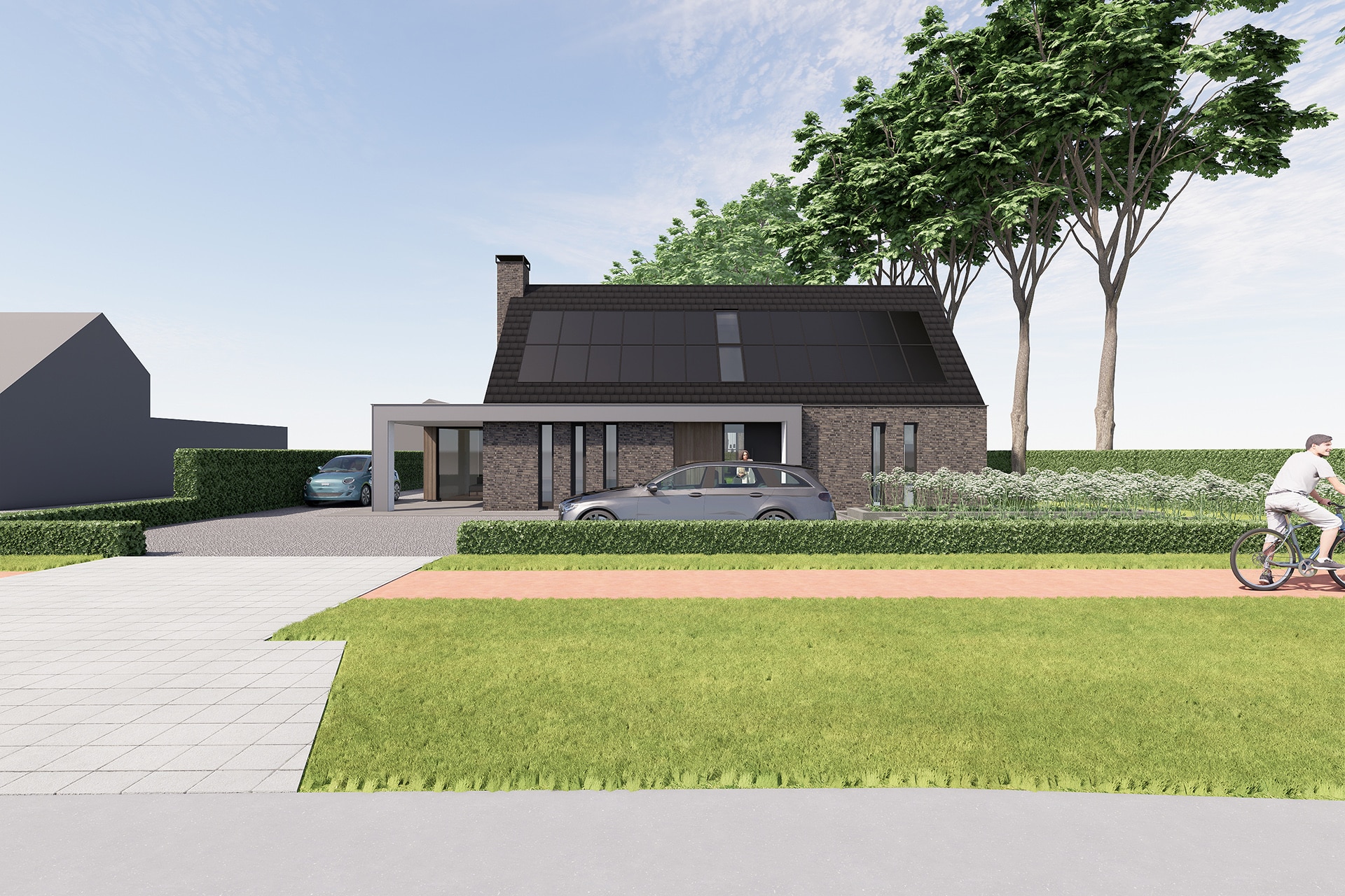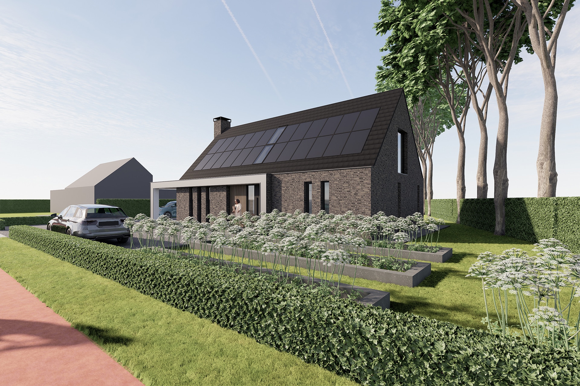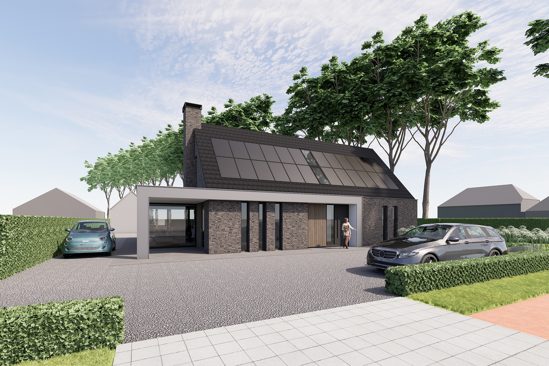 De woning zal komen te liggen aan de rand van het dorp Heesch. De woningen in de omgeving kenmerken zich door een landelijke uitstraling met voornamelijk langskappen parallel aan de hoofdweg. Daar sluit het ontwerp van deze woning op eigentijdse wijze op aan. De dakgoten zijn subtiel weggewerkt middels verholen goten en zijn de zonnepanelen geïntegreerd in het dak. Door een combinatie van grijs metaal, bruine gevelsteen met Fraké gevelplanken ontstaat er een ingetogen en warme uitstraling.