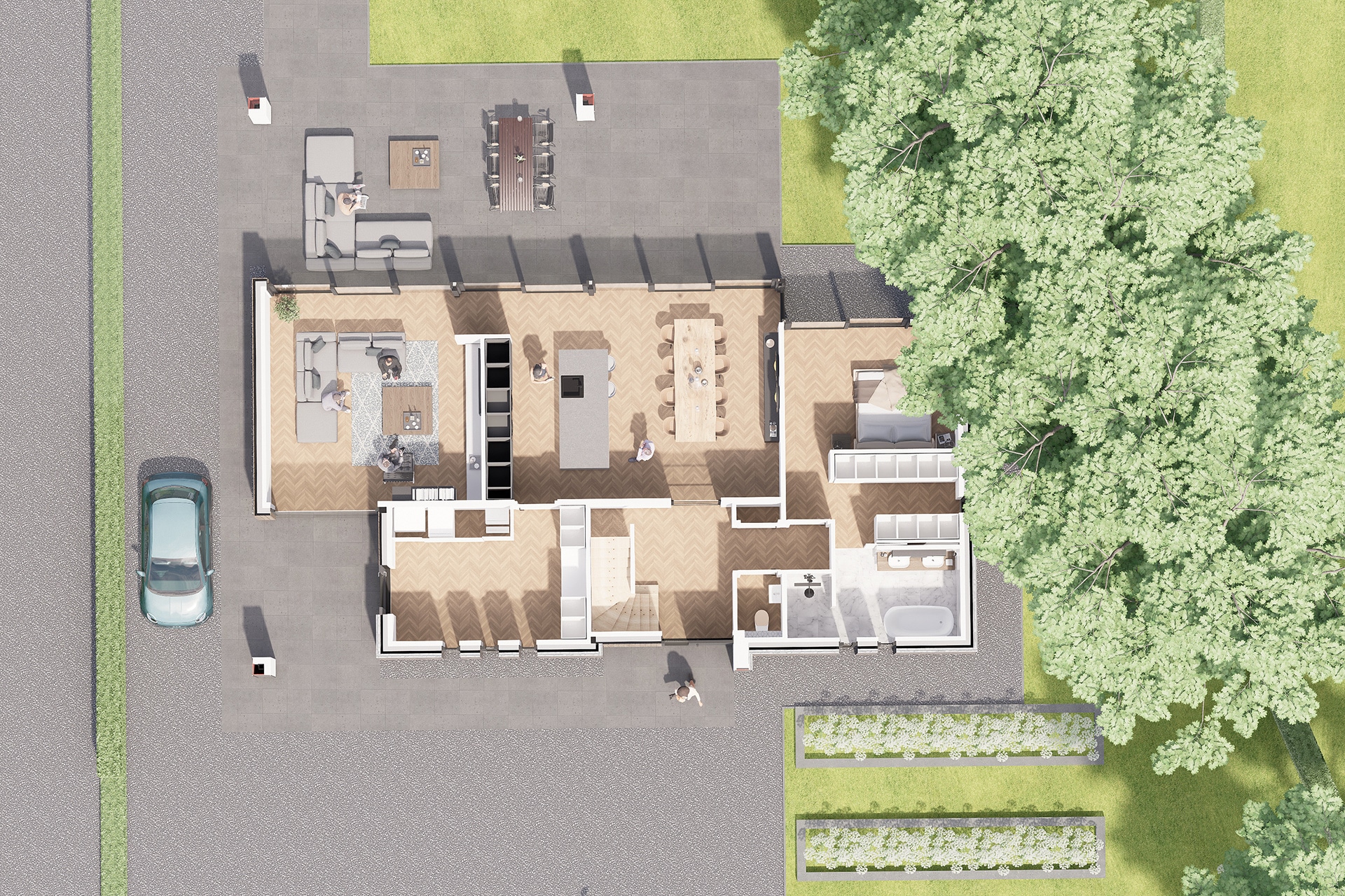 Deze moderne woning wordt gerealiseerd in Heesch. Het wordt een woning met een compleet woonprogramma op de begane grond.