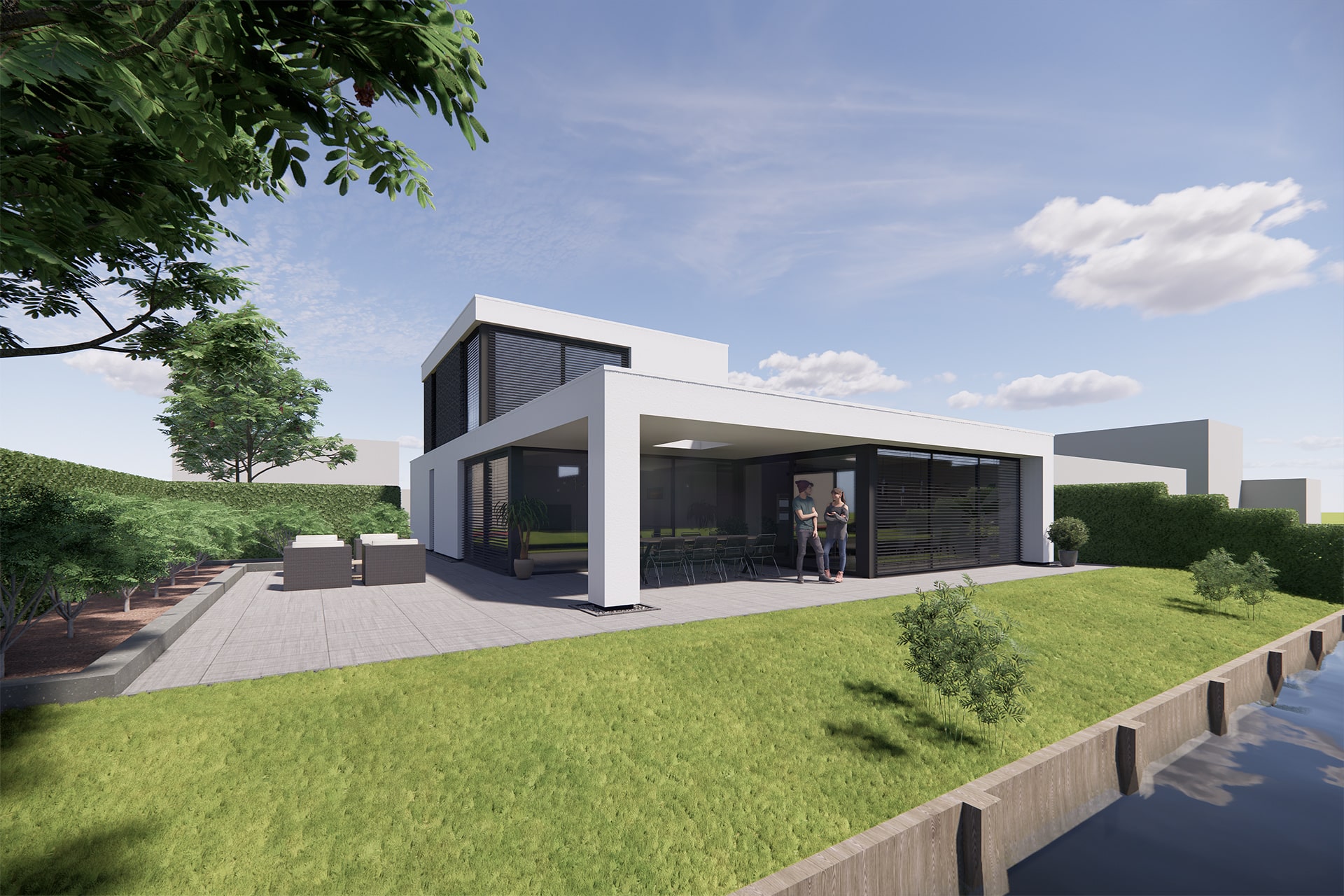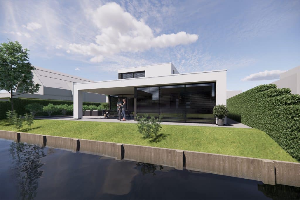 In de uitbreidingswijk Nieuw Banne in Sleeuwijk wordt deze strakke wit gestukte woning gerealiseerd. De woning bevat een compleet programma op de begane grond. Aan de achterzijde liggen zowel de woonkamer als keuken naar het water gericht. De slaapkamer bevindt zich aan de voorzijde. Op de verdieping is nog ruimte voor 2 slaapkamers en een badkamer.