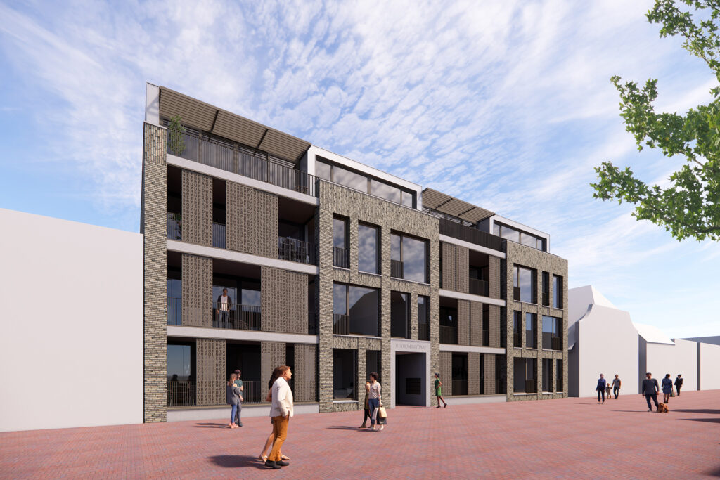 Overeenkomstig de koers van de gemeente Waalwijk waar steeds meer aandacht is voor meer wonen i.p.v winkelen zal er straks aan de Stationsstraat in het centrum van Waalwijk een nieuw complex met appartementen verrijzen genaamd “Karakter”. Een karakteristiek gebouw met vier bouwlagen en 15 royaal gedimensioneerde koopappartementen. Het gebouw heeft een hele bijzondere ligging, namelijk aan de voorzijde de levendigheid van de winkelstraat en de achterzijde grenzend aan de groene diepe tuinen van de Julianastraat. De appartementen zijn dan ook rug aan rug geschakeld met centraal in het gebouw gelegen; de lift, het trappenhuis en het ruim vormgegeven atrium waar bewoners elkaar kunnen ontmoeten voor een ongedwongen praatje. Ook dringt hier het daglicht diep het gebouw binnen en hebben alle appartementen subtiel licht en zicht op deze binnenruimte.
