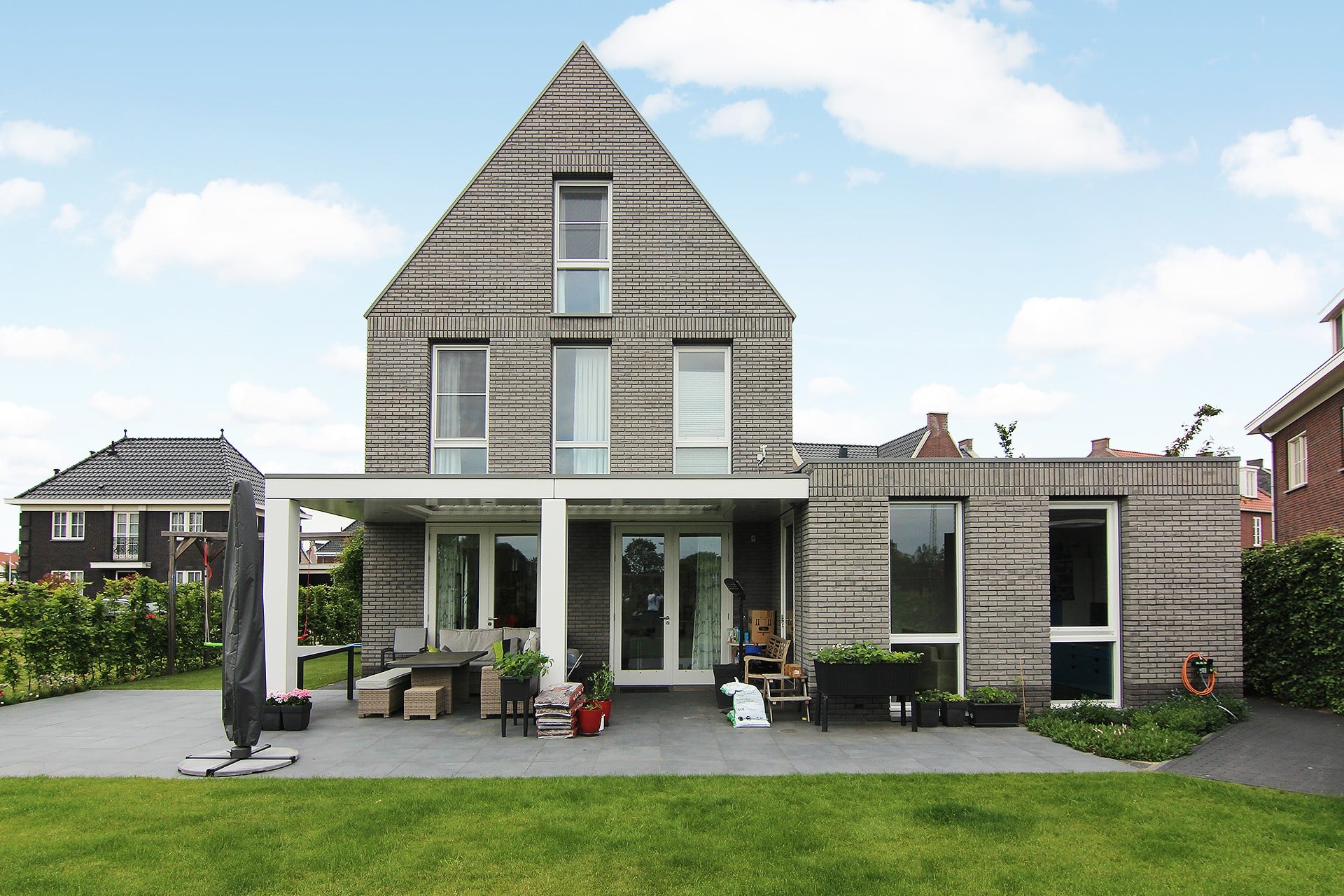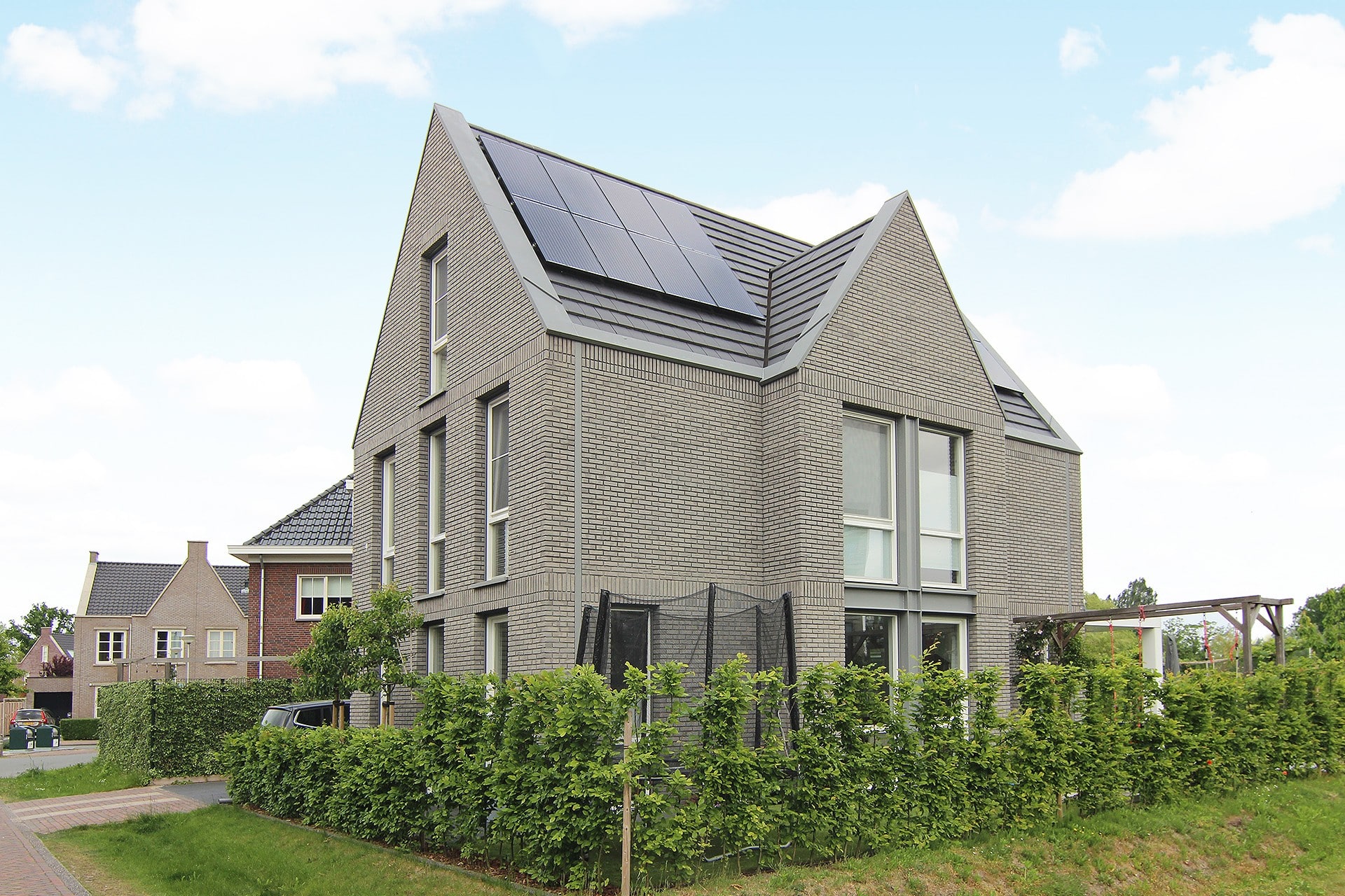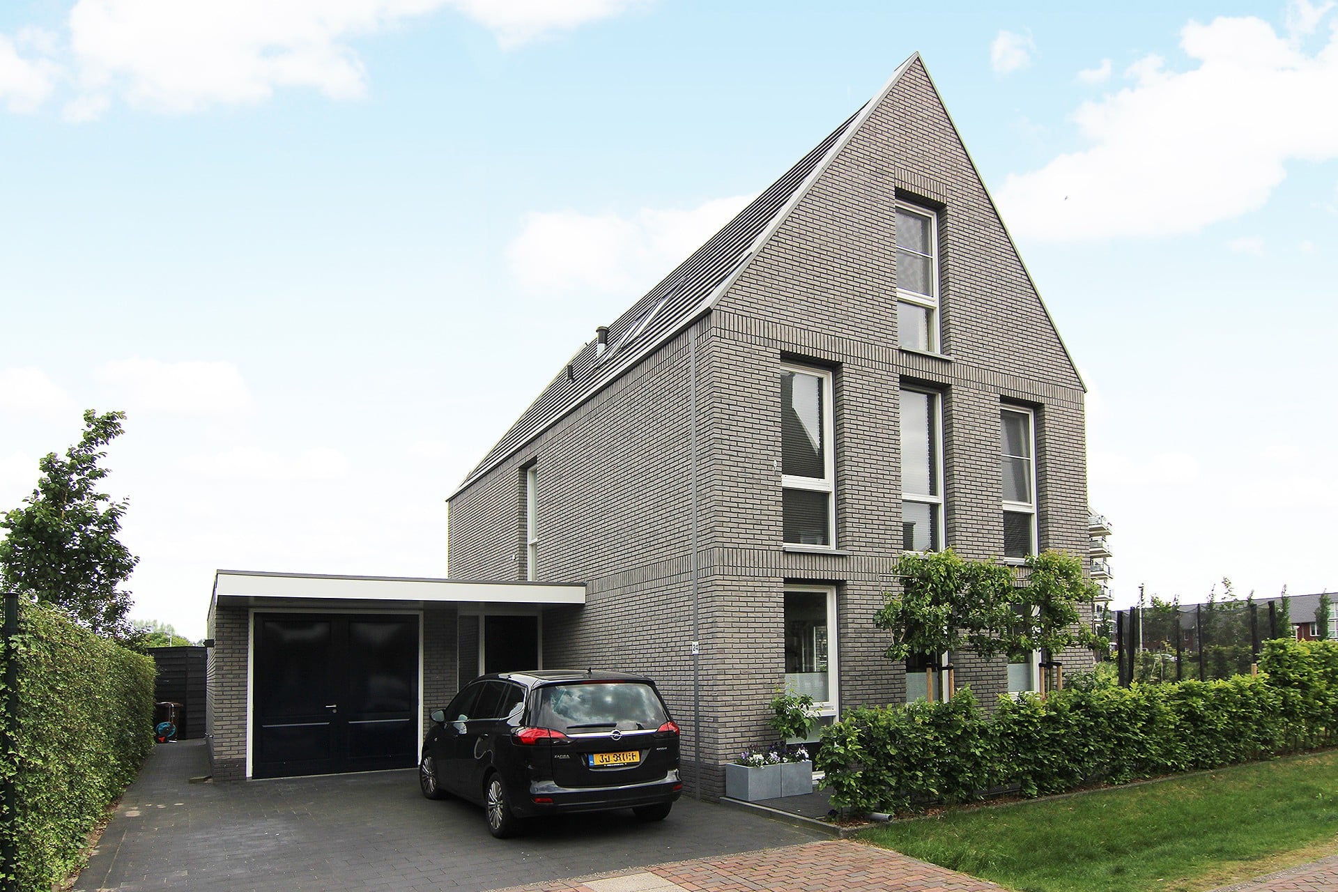 Deze woning staat in de uitbreidingswijk Vleuterwijde onderdeel van het dorp Vleuten. De woning is op een hoek gelegen en tevens aan de rand van de deelwijk. De woning is zo goed zichtbaar vanaf de doorgaande weg de Landschapsbaan en Europaweg. Er lag een duidelijk en strikt beeldkwaliteitsplan voor de hele wijk en daar diende deze woning in te passen. De opdrachtgever had echter wel de wens enigszins af te wijken van de al aanwezige bebouwing. De woning kenmerkt zich door de doorgestoken kopgevels die bedekt zijn met geprepatineerd zink. De goten en hemelwater afvoeren zijn weggewerkt tussen en in het metselwerk. De staande ramen van vloer tot plafond geven te woning een statig maar toch eigentijds voorkomen. De horizontale banen van staand metselwerk geleden de woning in leesbare lagen. De zijgevel kijkt uit richting de randweg en heeft teven een dakgekregen door zijn functie als prominente zijgevel. Het stalen kruis zet dit extra kracht bij en is goed zichtbaar. De woning is tevens voorzien van een bodem-waterwarmtepomp, wtw systeem met CO2 sturing, vloerverwarming en volledig ingebouwde zonwering in de oost, west en zuidgevel.