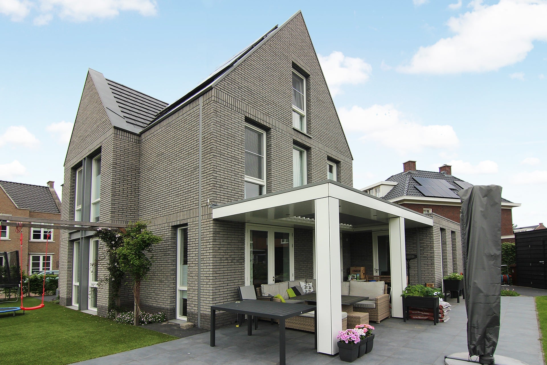 Deze woning staat in de uitbreidingswijk Vleuterwijde onderdeel van het dorp Vleuten. De woning is op een hoek gelegen en tevens aan de rand van de deelwijk. De woning is zo goed zichtbaar vanaf de doorgaande weg de Landschapsbaan en Europaweg. Er lag een duidelijk en strikt beeldkwaliteitsplan voor de hele wijk en daar diende deze woning in te passen. De opdrachtgever had echter wel de wens enigszins af te wijken van de al aanwezige bebouwing. De woning kenmerkt zich door de doorgestoken kopgevels die bedekt zijn met geprepatineerd zink. De goten en hemelwater afvoeren zijn weggewerkt tussen en in het metselwerk. De staande ramen van vloer tot plafond geven te woning een statig maar toch eigentijds voorkomen. De horizontale banen van staand metselwerk geleden de woning in leesbare lagen. De zijgevel kijkt uit richting de randweg en heeft teven een dakgekregen door zijn functie als prominente zijgevel. Het stalen kruis zet dit extra kracht bij en is goed zichtbaar. De woning is tevens voorzien van een bodem-waterwarmtepomp, wtw systeem met CO2 sturing, vloerverwarming en volledig ingebouwde zonwering in de oost, west en zuidgevel.