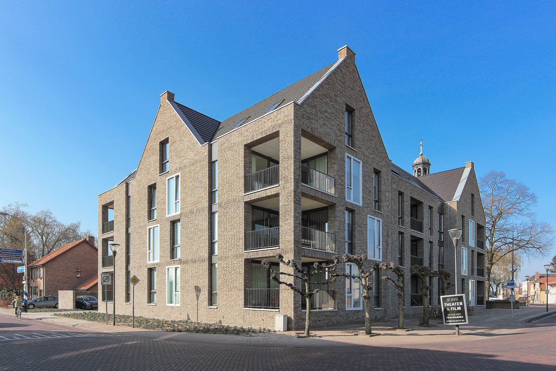Op de hoek van de Schoolstraat en het Dorpsplein in het centrum van Waspik hebben wij een plan gemaakt voor een 15-tal appartementen. Uitgangspunt was een logische inpassing tussen de naast gelegen kerk en het woonblok met supermarkt aan de oostzijde. Het gebouw wordt als een zelfstandig, statig gebouw ervaren in overeenstemming met de aanwezige gebouwen rond het plein. Het dient een eigen karakteristiek te hebben waarbij herkenbaarheid belangrijk is. Door het gebouw te geleden in zowel verticale als horizontale richting dient de schaal leesbaar te blijven en aan te sluiten bij de omgeving. De kozijnen met zowel diepe als geen negge en de diep liggende loggia’s ontstaat er een interessante gevel met veel plastiek. De kap beëindigd deze massa net als omliggende gebouwen en vormt zo een fraaie overgang van de met name de kerk naar het wooncomplex aan de oostzijde.