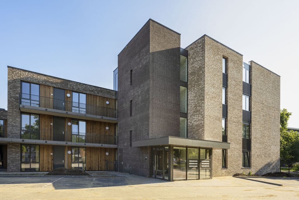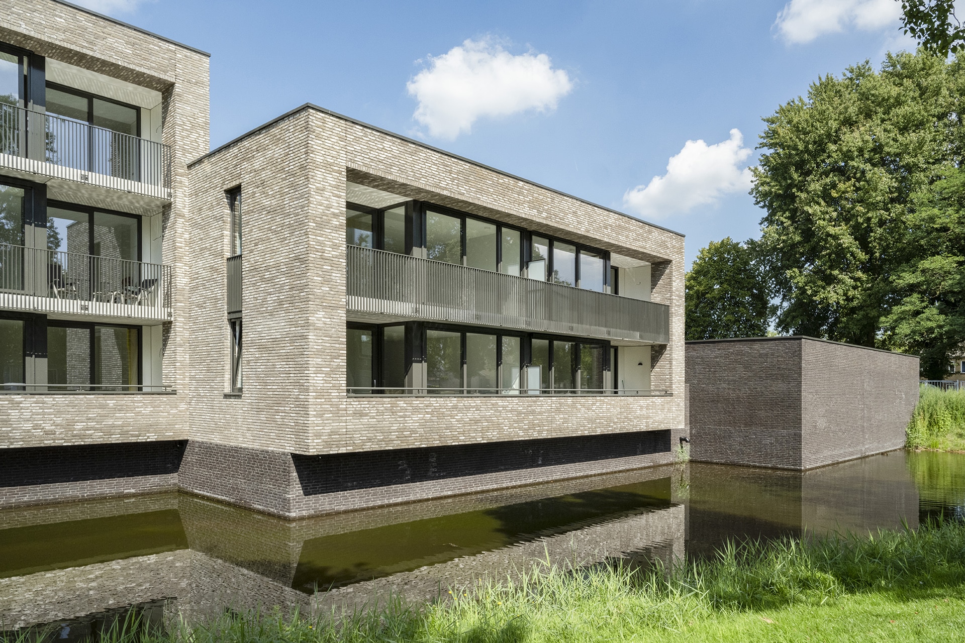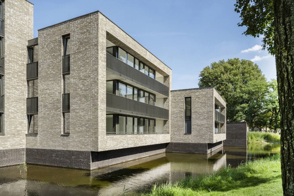 De bestaande school ligt aan de zuidzijde van de locatie ‘vertand’ in het water. Dit geeft niet alleen een fraai en speels beeld, maar zorgt ook voor diverse oriëntatie over het water heen. Deze vertanding is overgenomen in het appartementencomplex, zodat er een oriëntatie naar zowel het west als oosten ontstaat. Hierdoor ontstaat een fraaier zicht over het water.  Ook wordt het gehele complex in kleinere massa geleed die het geheel leesbaarder maakt.  De vertanding is ook vertaald naar een verloop in hoogte verschil.  Aan de noordoostzijde sluit de bebouwing met 2 bouwlagen in hoogte aan op de gymzaal. Deze loopt per massa met een bouwlaag op met een accent van 4 bouwlagen aan de westzijde. In de oksel van het complex bevindt zich het trappenhuis met entree.