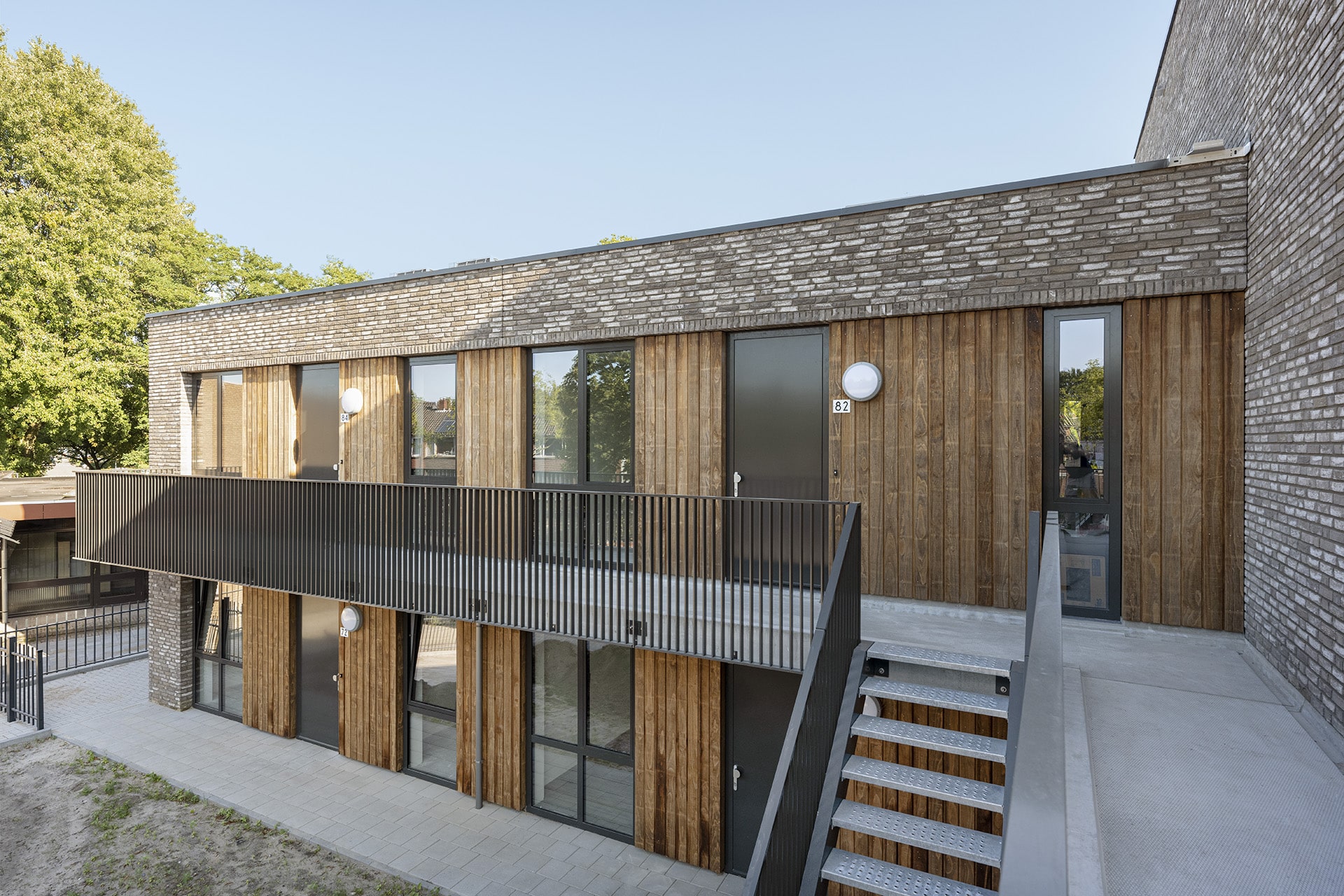 De bestaande school ligt aan de zuidzijde van de locatie ‘vertand’ in het water. Dit geeft niet alleen een fraai en speels beeld, maar zorgt ook voor diverse oriëntatie over het water heen. Deze vertanding is overgenomen in het appartementencomplex, zodat er een oriëntatie naar zowel het west als oosten ontstaat. Hierdoor ontstaat een fraaier zicht over het water.  Ook wordt het gehele complex in kleinere massa geleed die het geheel leesbaarder maakt.  De vertanding is ook vertaald naar een verloop in hoogte verschil.  Aan de noordoostzijde sluit de bebouwing met 2 bouwlagen in hoogte aan op de gymzaal. Deze loopt per massa met een bouwlaag op met een accent van 4 bouwlagen aan de westzijde. In de oksel van het complex bevindt zich het trappenhuis met entree.